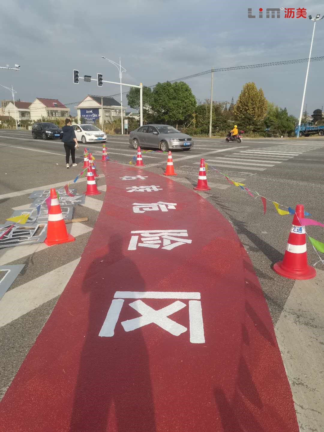 在道路急轉(zhuǎn)彎陡坡處、分流合流處、車轍較深外等恃殊路段或場所采用彩色路面或亮色路面鋪裝,用來形成與普通瀝青路面的對比路段,提示警告特殊的交通條件,使駕駛?cè)藛T減速慢行,有效地避免交通事故發(fā)生。